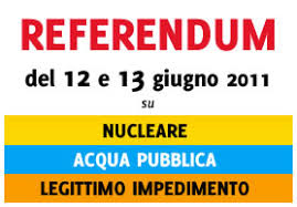 il 04/06. Si tratta insomma d'un referendum abrogativo osteggiato dal governo soprattutto per via della questione nucleare come ammesso spudoratamente dal premier Berlusconi che ha definito una decisione spinta dall'onta emotiva l'eventuale di Fukushima bocciatura della corsa atomica dell'Italia.